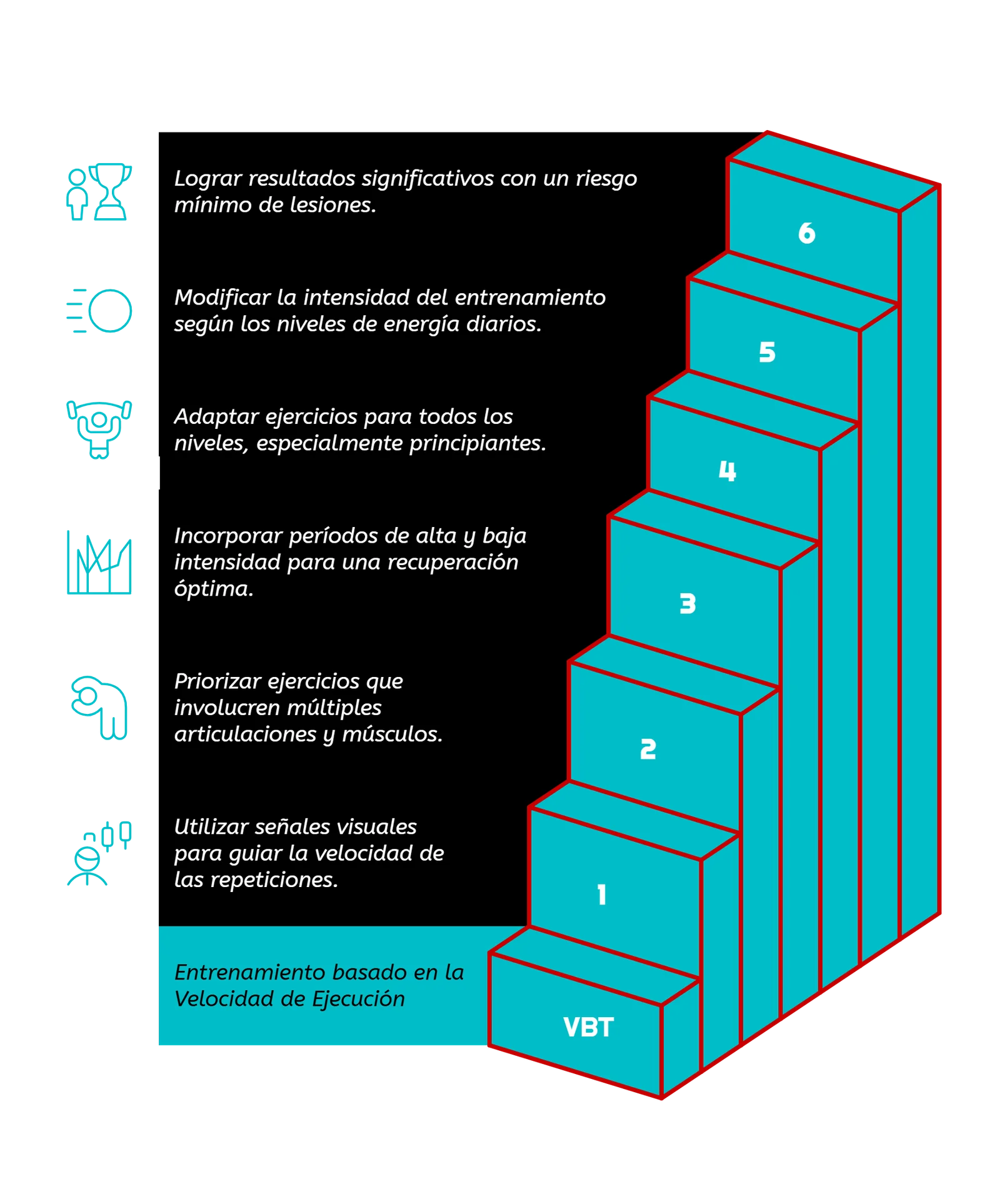 - Utiliza indicadores visuales y sensaciones para asegurar que cada repetición se realiza con la velocidad adecuada