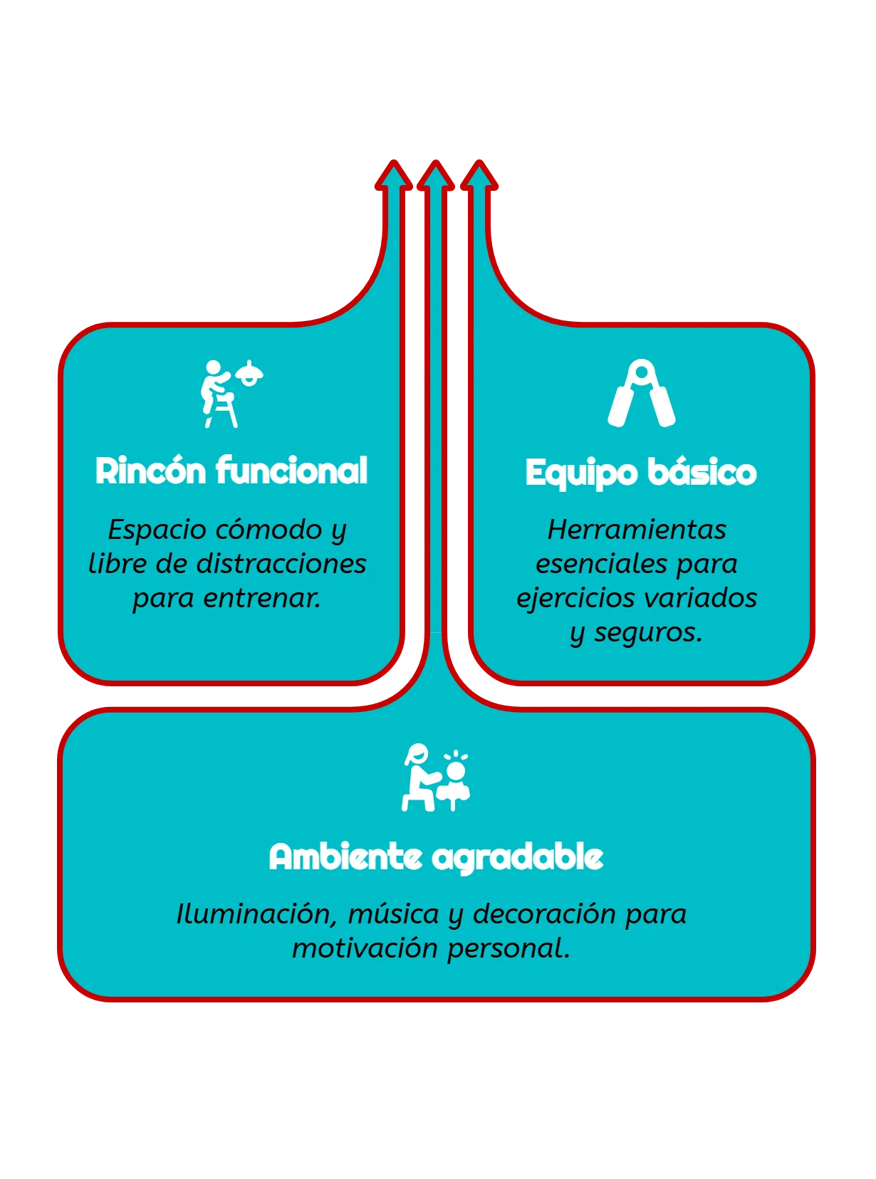 Asegúrate de tener buena iluminación y usa música que te motive. Mantén todo el equipo organizado y accesible. Decora con elementos que te inspiren como frases motivadoras o plantas.