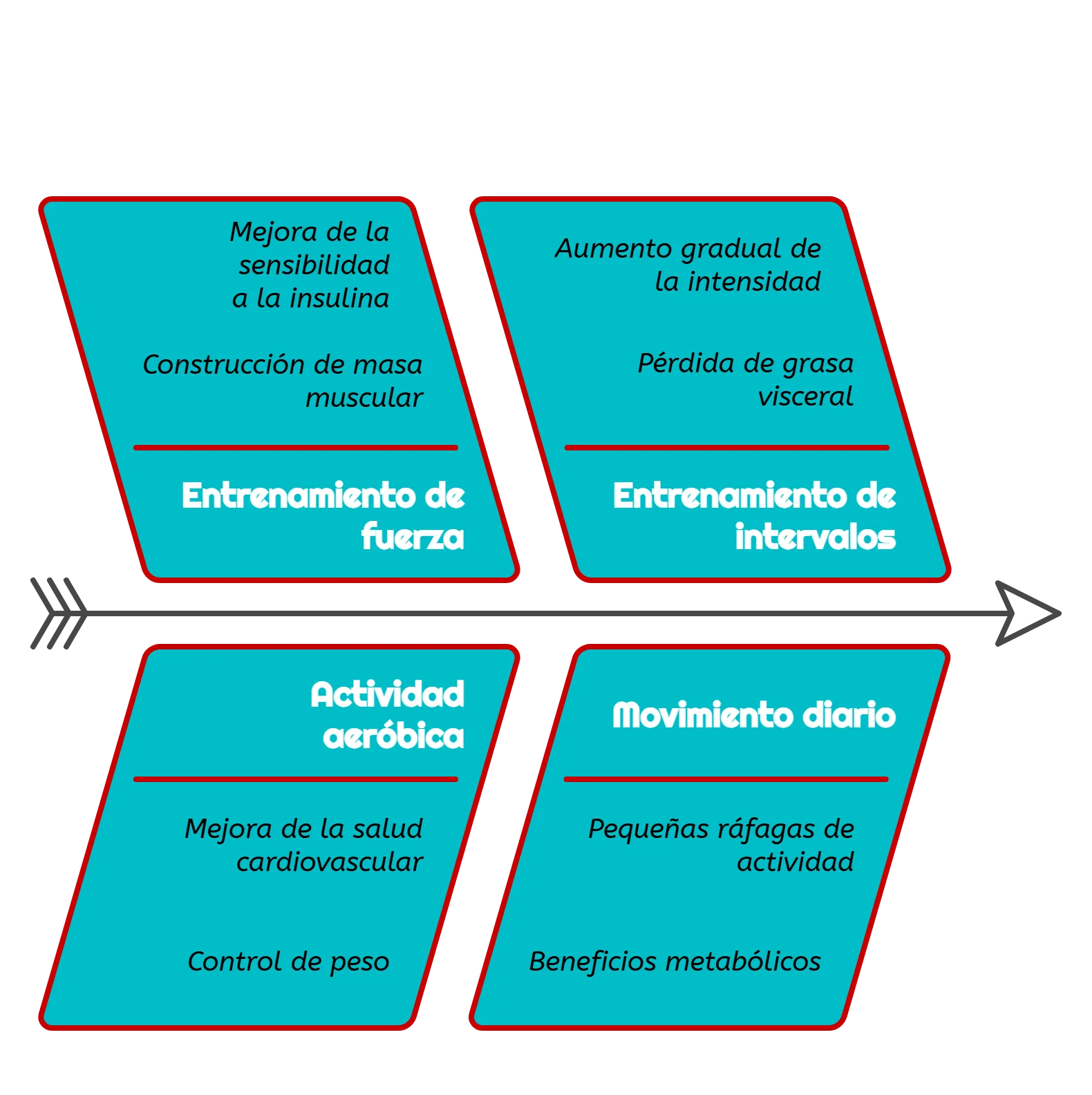 - Incorporar actividad física: Construir masa muscular y mejorar la salud cardiovascular.