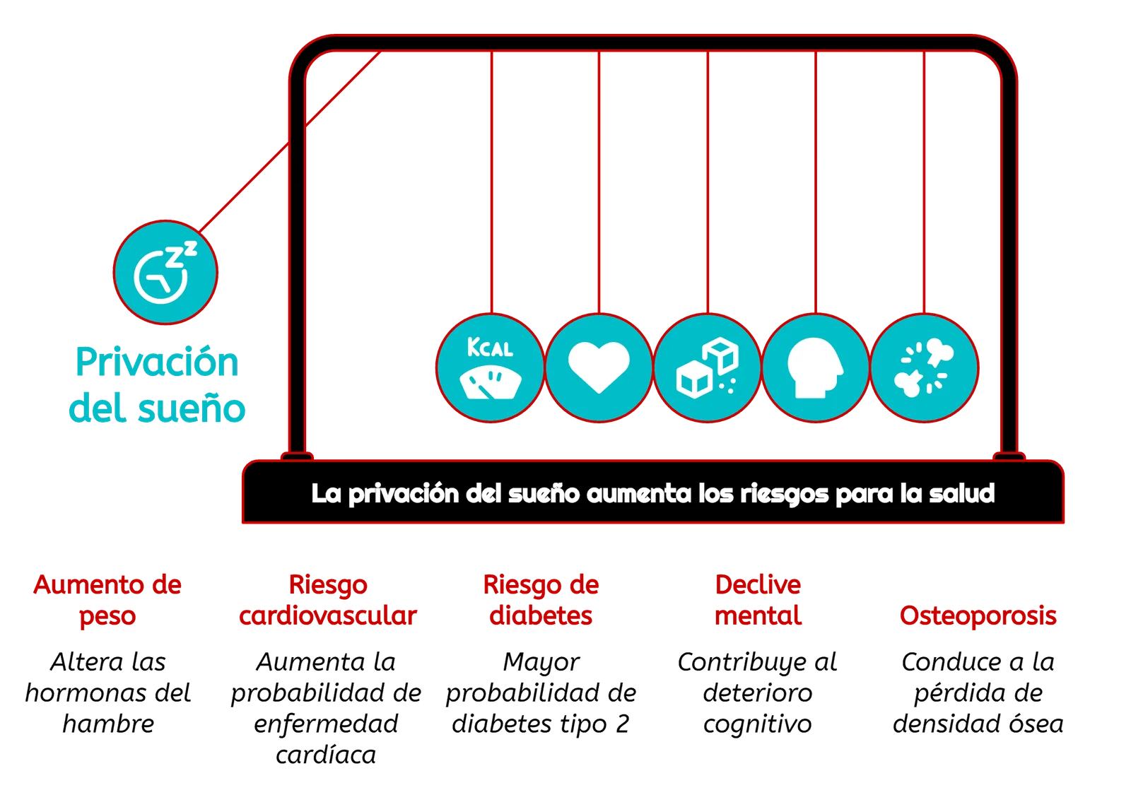 - Salud mental: Contribuye a deterioros cognitivos y mayor riesgo de depresión
