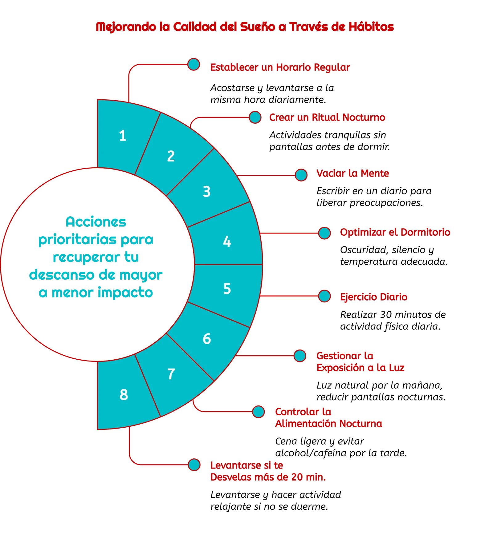 - Horario regular: Acuéstate y levántate a la misma hora todos los días
